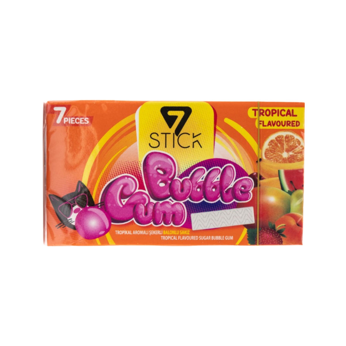 علكة ستيك بنكهة العلكة الفقاعية بطعم استوائي (7 قطع) هي خيار ممتع ولذيذ يمنحك نكهة فواكه استوائية منعشة مع كل قطعة.