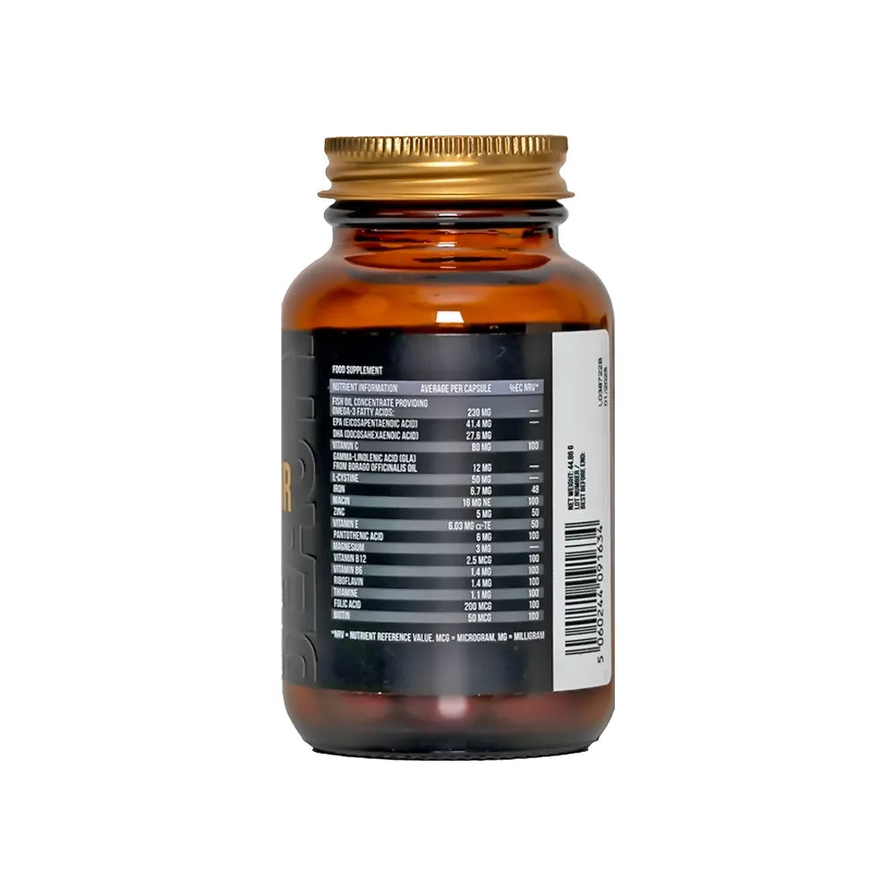 فيتامين ب المركب: تحتوي الكبسولات على البيوتين والنياسين وب12 و ب6، تساعد هذه الفيتامينات على تقوية الشعر وحمايته من التلف والقصف كما أنها تساعد على تعزيز نموه وتمنع التساقط.