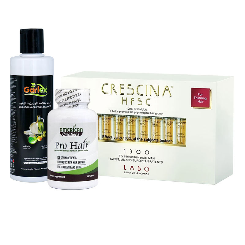 عرض امبولات كريشنا 1300 انبات فقط رجال + فيتامينات برو هير + شامبو جارلكس