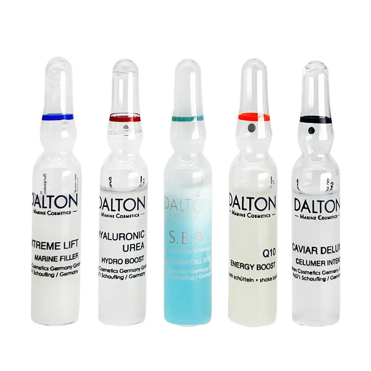 أمبولة دالتون S.E.A: تعمل على ترطيب البشرة وتجعلها ناعمة كالحرير. تقوم هذه الأمبولة بزيادة إنتاج الكولاجين كما أنها تشد البشرة وتحسن من مرونتها.