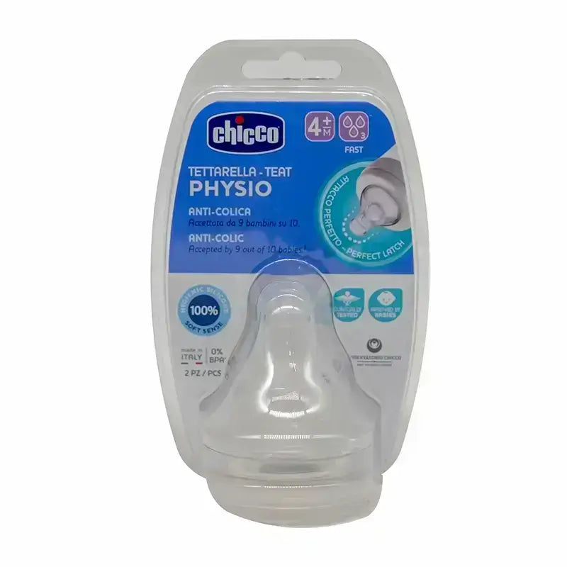 - Chicco Physio Teats are interchangeable and fast-flow to cater to the stage of your baby's growth to ensure a perfect fit for their needs.