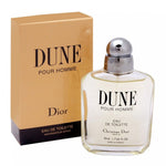 Dior Dune Pour Homme Eau de Toilette for men 100 ml contains fruits and warm spices, vanilla, rose, tonka bean, and sandalwood.