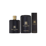 A set for men consisting of a group of aromatic woods, hot spices, leather, lavender, vetiver, musk, patchouli, bergamot, honey and cinnamon.