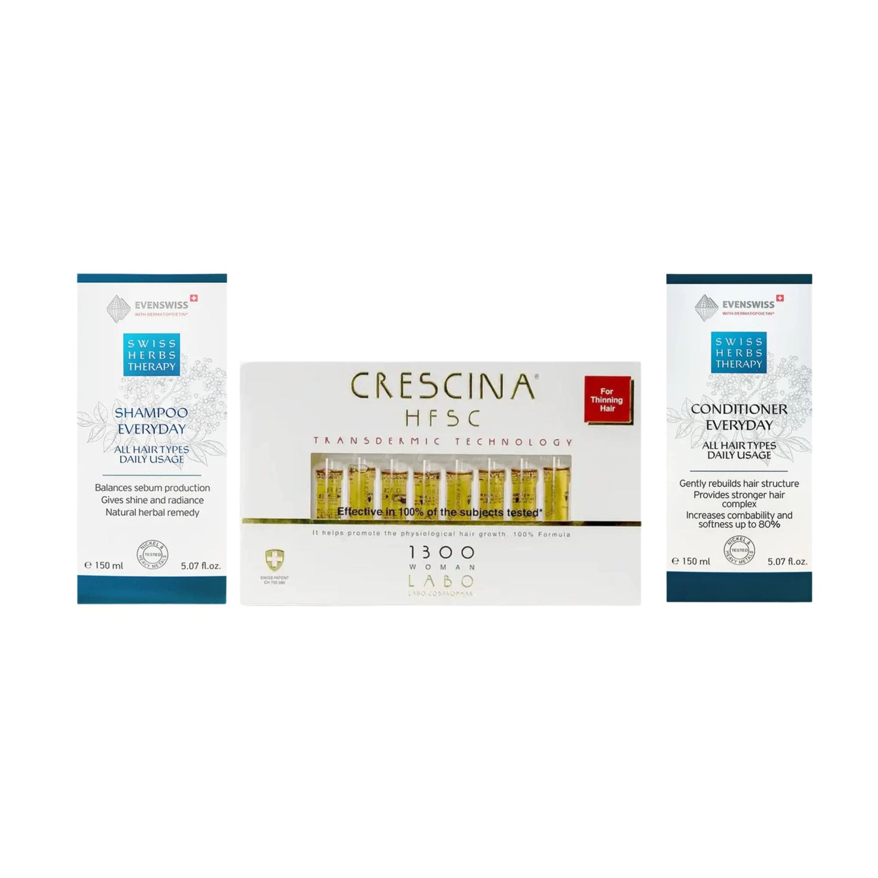 Crescina Transdermic 1300 Woman+Evenswiss Shampo+Conditioner