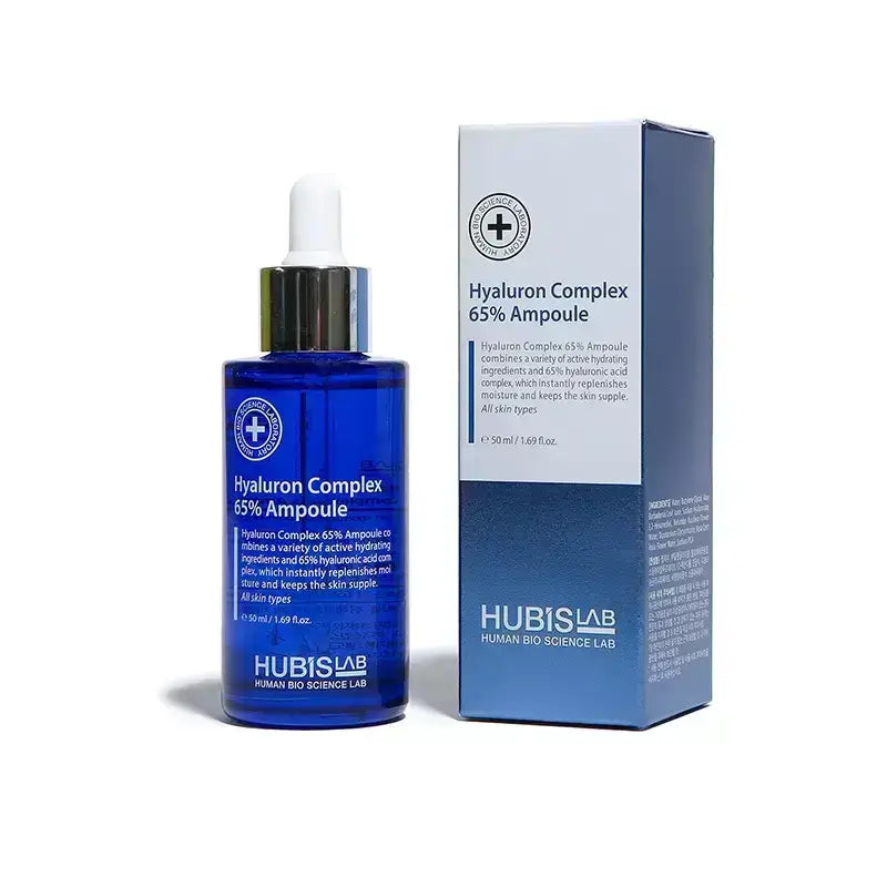 Hubislab Moisture Max Hyaluron Complex 65% Ampoule 50 ml is a complex concentrated serum containing 65% Hyaluronic acid used to recharge the skin with hydration and keep it soft.